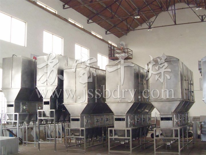 沸騰干燥,又稱流化床,它是由空氣過濾器、加熱器、沸騰床主機,旋風分離器,布袋除塵器、高壓離心風機、操作臺組成,由于干燥物料的性質(zhì)不同,配套除塵設備時,可按需要考慮,可同時選擇旋風分離器、布袋除塵器,也可選擇其中一種,一般來說比重較大的如沖劑及顆粒料干燥只需選擇旋風分離器,比重較輕的小顆粒狀和粉狀物料需配套布袋除塵器,并備有氣力送料裝置及皮帶輸送機供選擇。